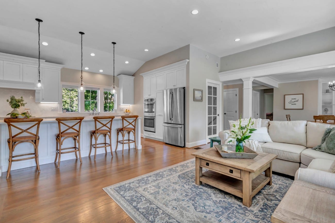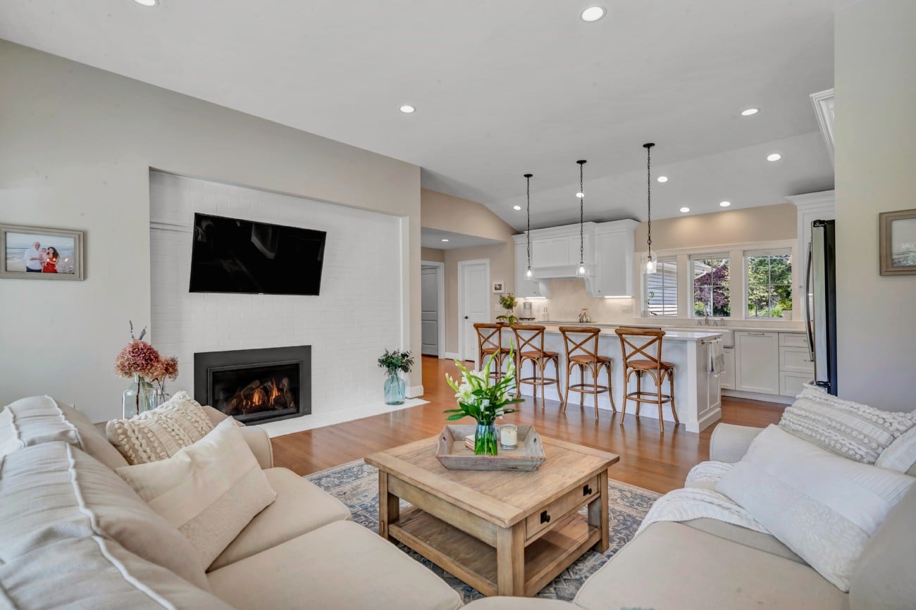 Welcome to Back to the Future, a stunning coastal farmhouse masterfully crafted by Uccello Fine Homes in the charming town of Waterford, CT. This extraordinary 2,540-square-foot residence, designed by KV Designs of Old Saybrook, seamlessly blends classic ranch-style architecture with modern coastal elegance, creating an exquisite sanctuary for comfortable living.